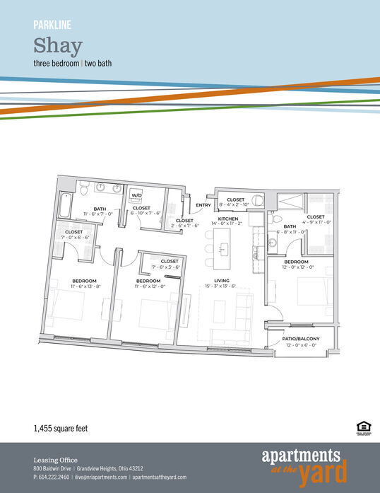 Discover the Shay—a 1,455-square-foot home designed for modern lifestyles. Host friends in your open kitchen with quartz countertops, backsplash, and a spacious island, or take in park views from your private balcony or patio. Stylish wood-like flooring flows through the main areas, while bedrooms offer plush comfort and ample storage. With in-unit laundry and contemporary finishes, this floor plan is all about convenience and style.