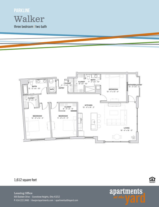 The Walker offers 1,612 square feet of space perfect for modern living, with three bedrooms and two full baths. A well-appointed kitchen with quartz countertops, a large island, and stylish backsplash makes meal prep easy, while oversized closets provide plenty of storage. Wood-like flooring in main areas and bathrooms, carpeted bedrooms,