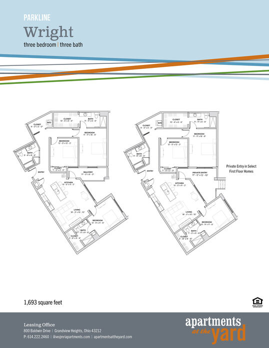 The Wright is Parkline’s largest apartment, offering an impressive 1,693 square feet of modern living space. This three-bedroom, three-bathroom home features expansive closets and options for 10’ ceilings and a private entry or balcony with serene courtyard views. Inside, you’ll enjoy an in-unit washer and dryer, stylish quartz countertops, a kitchen island with backsplash, and contemporary lighting. Wood-like flooring flows through the main areas and bathrooms, while plush carpet adds comfort to the bedrooms—creating the perfect blend of luxury and functionality.